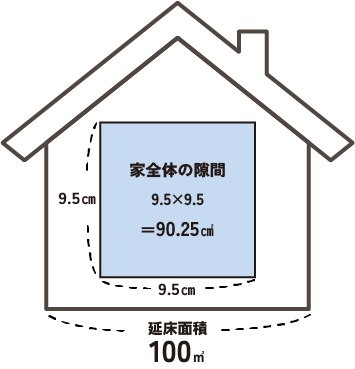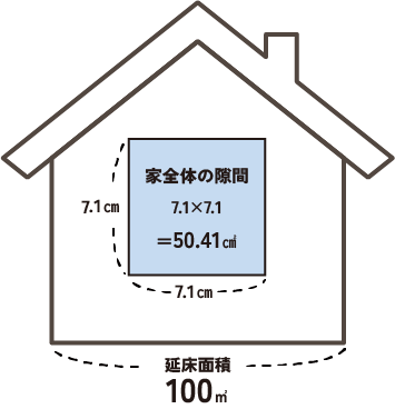 C値(㎠/㎡)=住宅全体の隙間面積(㎠)÷延床面積(㎡)