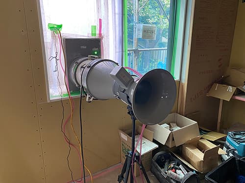 専用の機械を使って、第三者機関の気密測定技能者が行います。